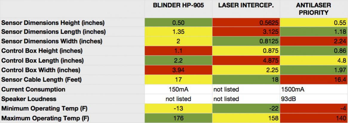 On Sunday, September 8, 2013,RedRocket, RadarRob and Yellowcab gathered to test and compare the Laser Interceptor , Blinder HP-905 Compact and the new AL Priority (AntiLaser Priority).
