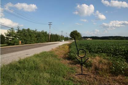 For the testing of the dual setups on the front of the testing vehicle the testing course was about 1000 feet, so the testing course for the single head setup should be about 1000 feet to. WRONG! Since we were not shooting the car from directly in front of the vehicle, but were positioned in the weeds off of the road, we had an obstruction that limited the test course to 800 feet. Meet the tree.