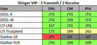 Against the guns tested the Stinger VIP tested extremely well especially considering that the Stinger came to the test without being programed to jam most of the guns we tested it against. We were told with the exception of the Stalker XLR and the DragonEye Technology LIDARs, the Stinger VIP used its generic jamming algorithm. We didn't have the opportunity to test the Stinger VIP against our entire inventory of LIDARs because the engineer and representatives of Stinger also needed the car for radar testing as well, and used this event to further tweak the Stinger VIP firmware to improve its coverage of LIDAR threats as well as to improve its overall performance.