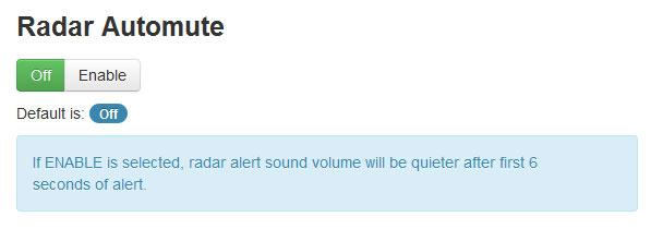 Auto Mute on the Radar Alerts is set through the setup file. It is a feature and the settings are listed under Auto Mute in the Sti-R settings.