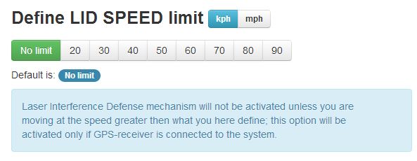 which but it will not be blue). When your speed increases to above the set limit the led will change back to blue. If you do not have a GPS signal the ALP cpu will default to the highest protection mode.
